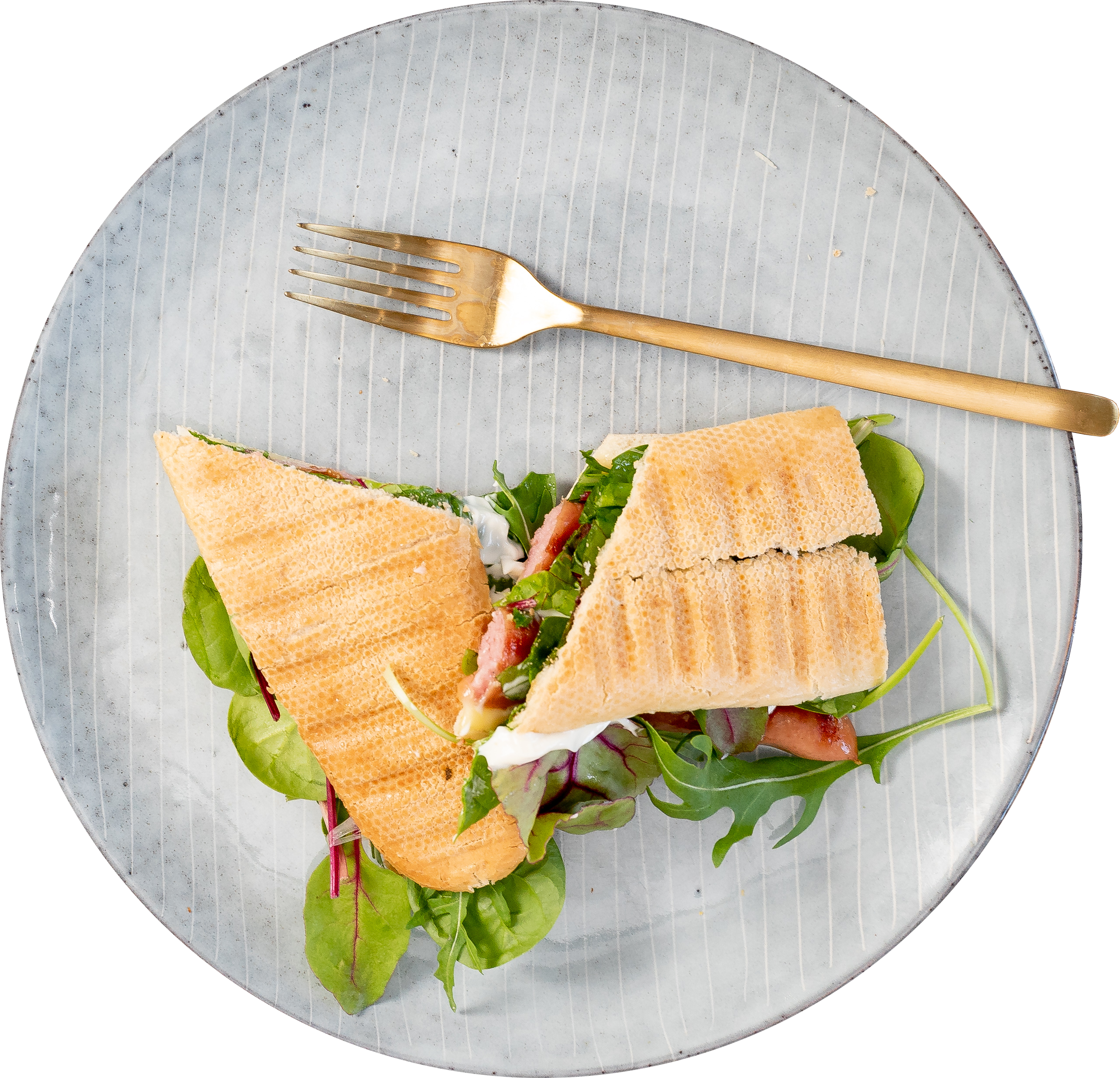 - Smør brødet med din yndlings spread, efterfulgt af pølserne og salaten. Luk med den anden halvdel af brødet.