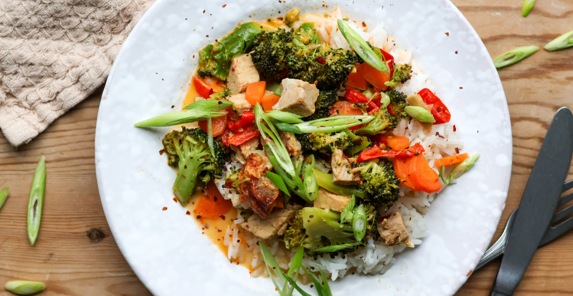 Giv flæskesteg fra julebordet nyt liv med denne farverige og smagfulde karryret. Brug rester af flæskesteg, grøntsager fra grøntsagsskuffen, kokosmælk og rød karry til at lave denne nemme og smagfulde ret. Perfekt til at mindske madspild og nyde julens rester på en helt ny måde.