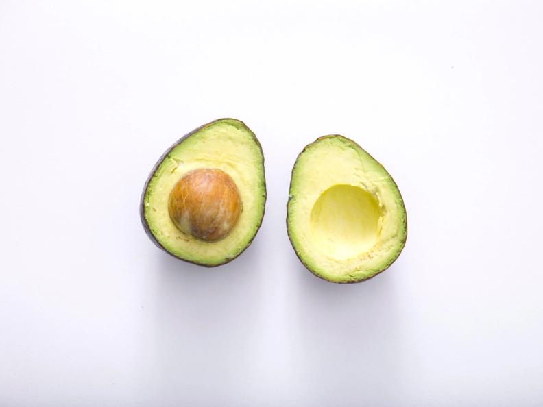 - Parte los aguacates por la mitad y vacíalos en un cuenco.