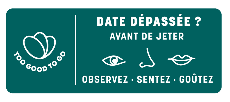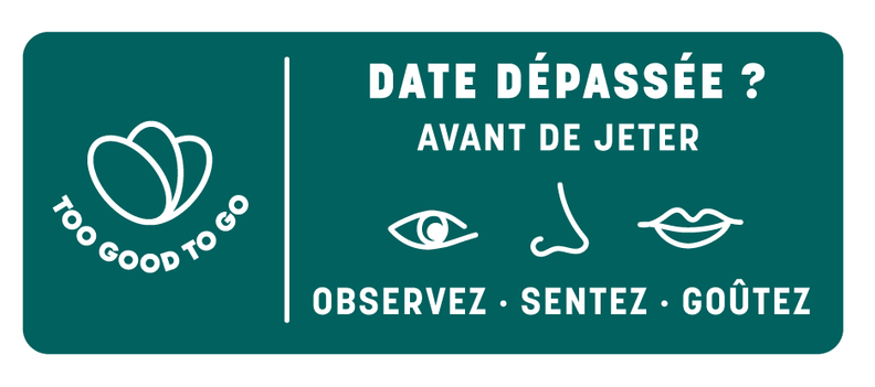 Lorsqu'il s'agit d’évaluer la fraîcheur d’un produit qui comporte une DDM, seulement 46 % des Français se fient à leurs sens (apparence, odeur, goût). Face à ce constat, Too Good To Go a mis en place depuis 2020, des actions de sensibilisation au travers de son pictogramme “Observez, sentez, goûtez”. Présent sur les emballages de plus de 90 marques partenaires en France (Charles & Alice, Mondelez, Côte d’Or, Lu, La Conserverie du Sud…), il est imprimé sur 2 milliards de produits chaque année. Cette initiative est reconnue par 4 Français sur 10 qui en ont déjà entendu parler ou l’ont vue sur des emballages.