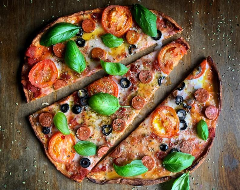 4 pizzabunner laget av grønnsaksrester