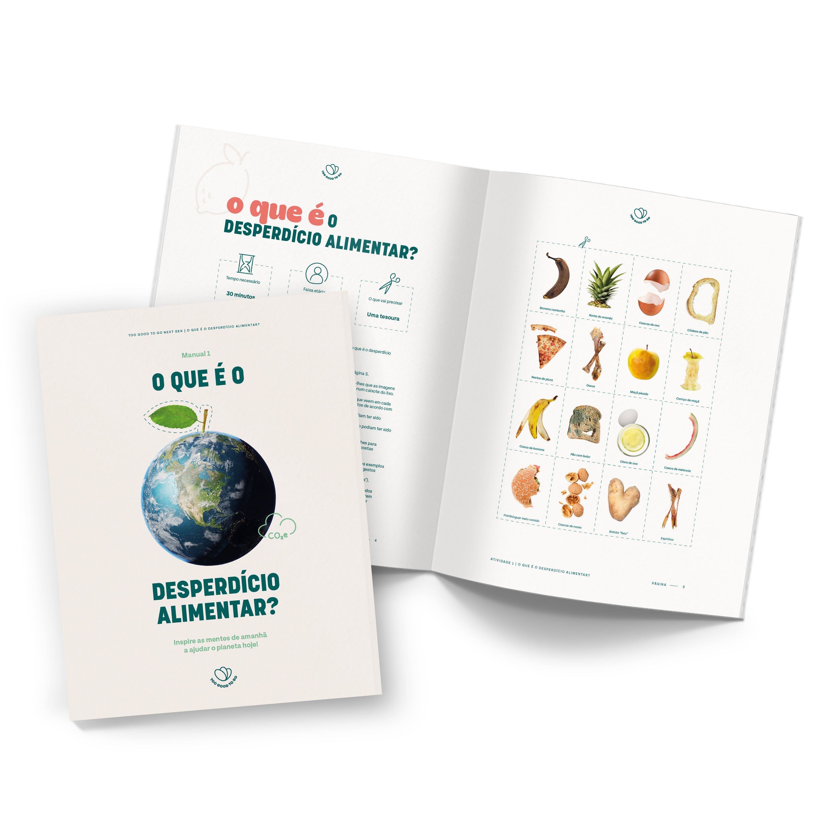 - O primeiro caderno intitula-se O que é o desperdício alimentar? e, através de várias atividades como ‘A viagem da banana’, as crianças aprendem o que é o desperdício alimentar, como acontece e por que é importante evitá-lo para cuidar do planeta.